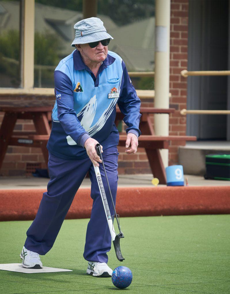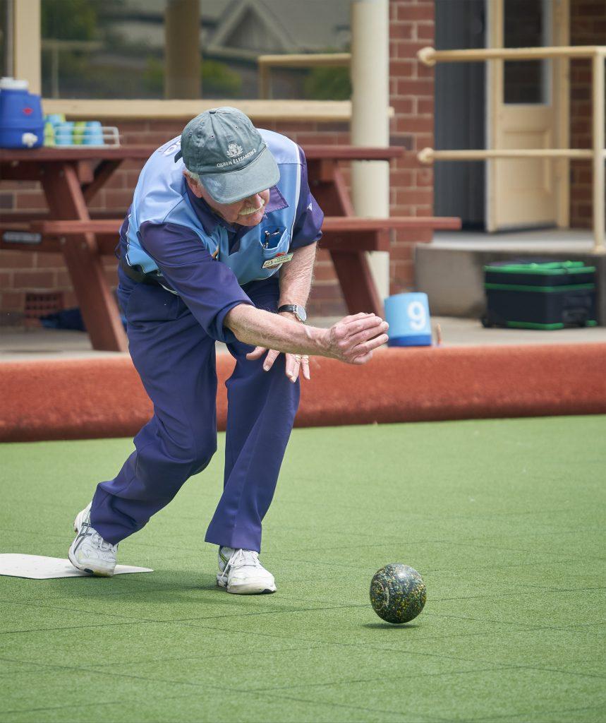 In the other semi on rink 8, Graham Hunt was marker when Ted McPhee took on Terry Norwood and this game quickly turned into an absolute blood-letting massacre!! With Ted in hot form and hugging the jack, and his opponent in no-mans-land, Ted raced to a massive 15 – 1 lead after just nine ends! Playing with the wind, Ted was drawing brilliantly, while his opponent, trying to play into the wind, could find neither line nor length. The further the game went, the better Ted bowled, and he handed Terry a massive bowling lesson. In all, the game lasted just eighteen ends, with Ted claiming fifteen and his battered opponent a very miserly three ends! What an emphatic win at 25 – 5! Ouch!