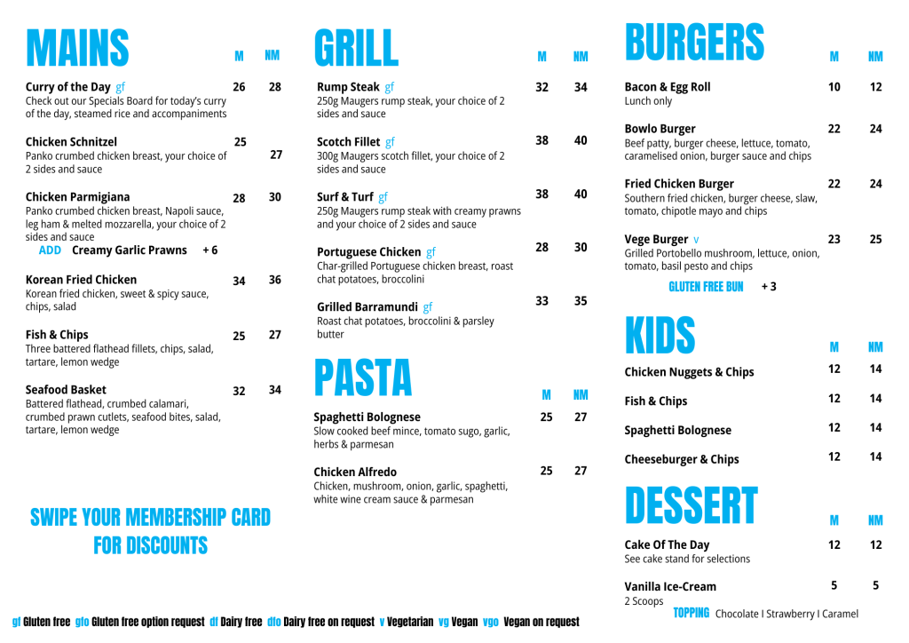 *Please note some prices and offerings are subject to change on show nights, public holidays and other special events.